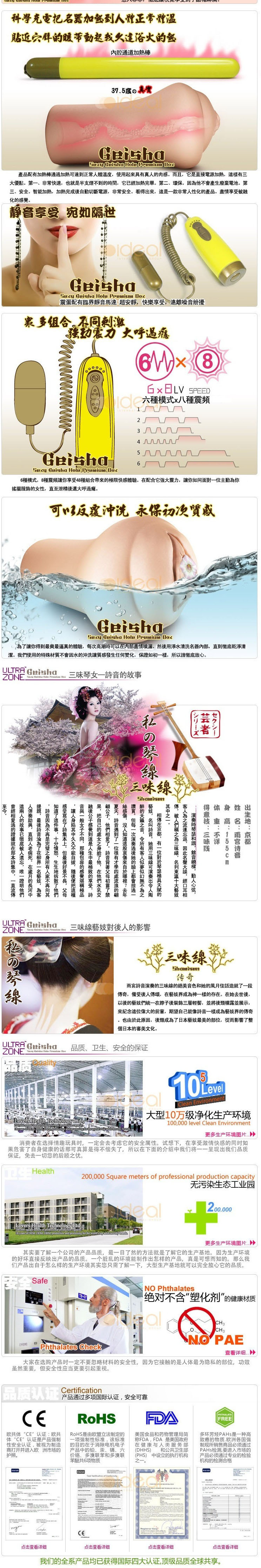 藝妓系列產品均採用全球頂級的LoveSkin(虛擬肌膚)材質按照人體生物學做成,跟真人皮膚有98%的相似度,它柔軟,彈性和光澤度都較好,摸上去溫潤光滑,還具有安全、環保、仿真和衛生的優點,不含任何有害物質,對人體沒有任何傷害。