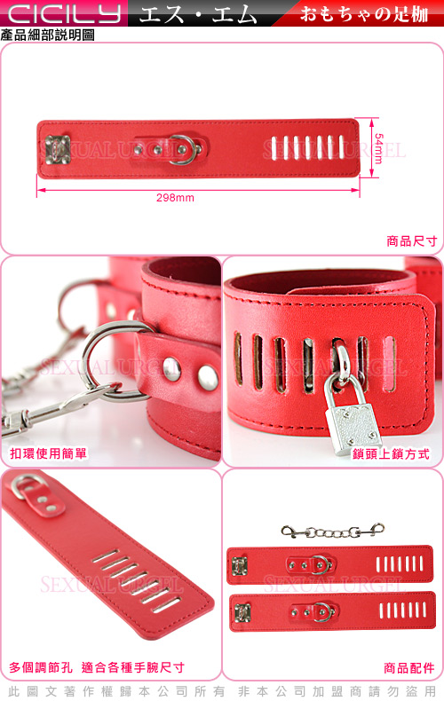 .商品內容:虐戀精品CICILY-紅色M女-俘虜腳銬(帶鎖)X1