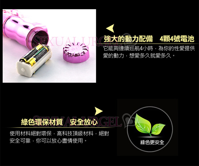 整體設計符合人體工學,與身體配合更完美!靜音設計,全機生活防水功能設計,讓快樂無拘無束盡情享受前所未有的至強新快感!