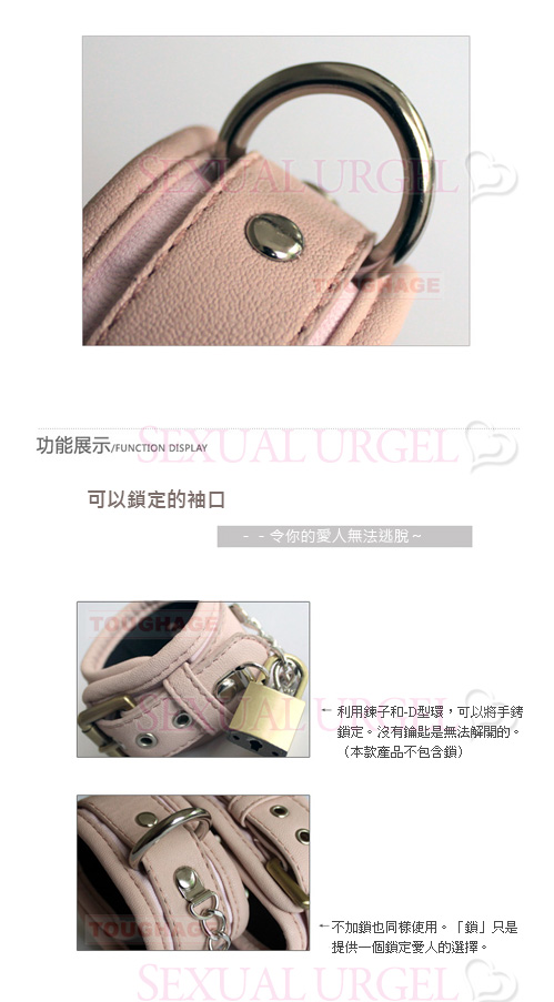 .主商品:美國駭客Toughage-Cotton Lining Wrist Cuffs/ Locking Buckle棉襯手腕銬-粉紅