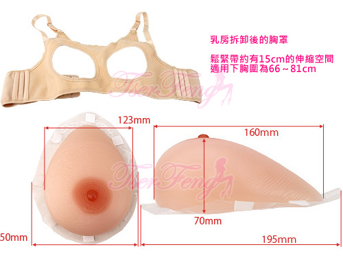 拆卸式設計,乳房與胸罩可分開,乳房周圍有足夠的魔鬼氈