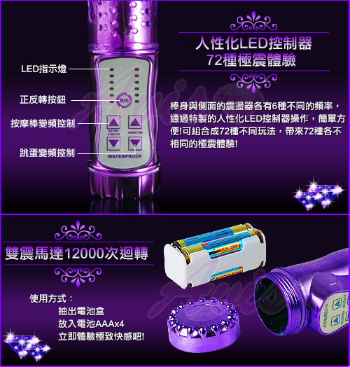 .360度旋轉,頭部及鋼珠可由慢到快轉動,增加妳的酸軟感。