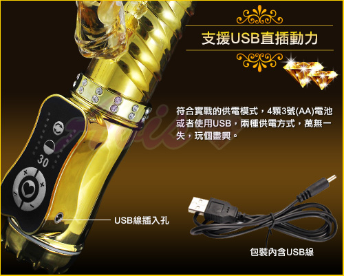 .主商品:雪豹突擊-電池110VUSB 三用頂級多功能滾珠按摩棒-金 *1