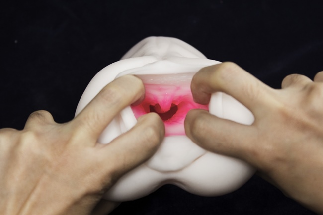 看得出來,名器相當有彈性名器本身有些許硬度,並不是軟趴趴的矽膠,所以拿起來的感覺是又厚又有彈性