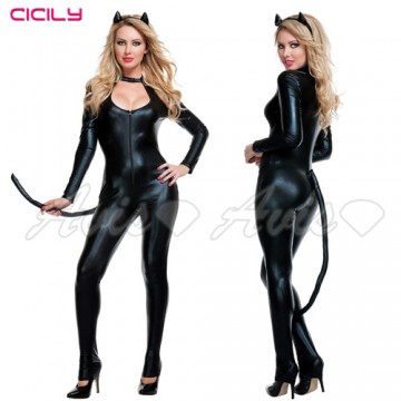 虐戀精品CICILY-魔鬼愛人-塗膠仿皮性感彈力連體緊身衣