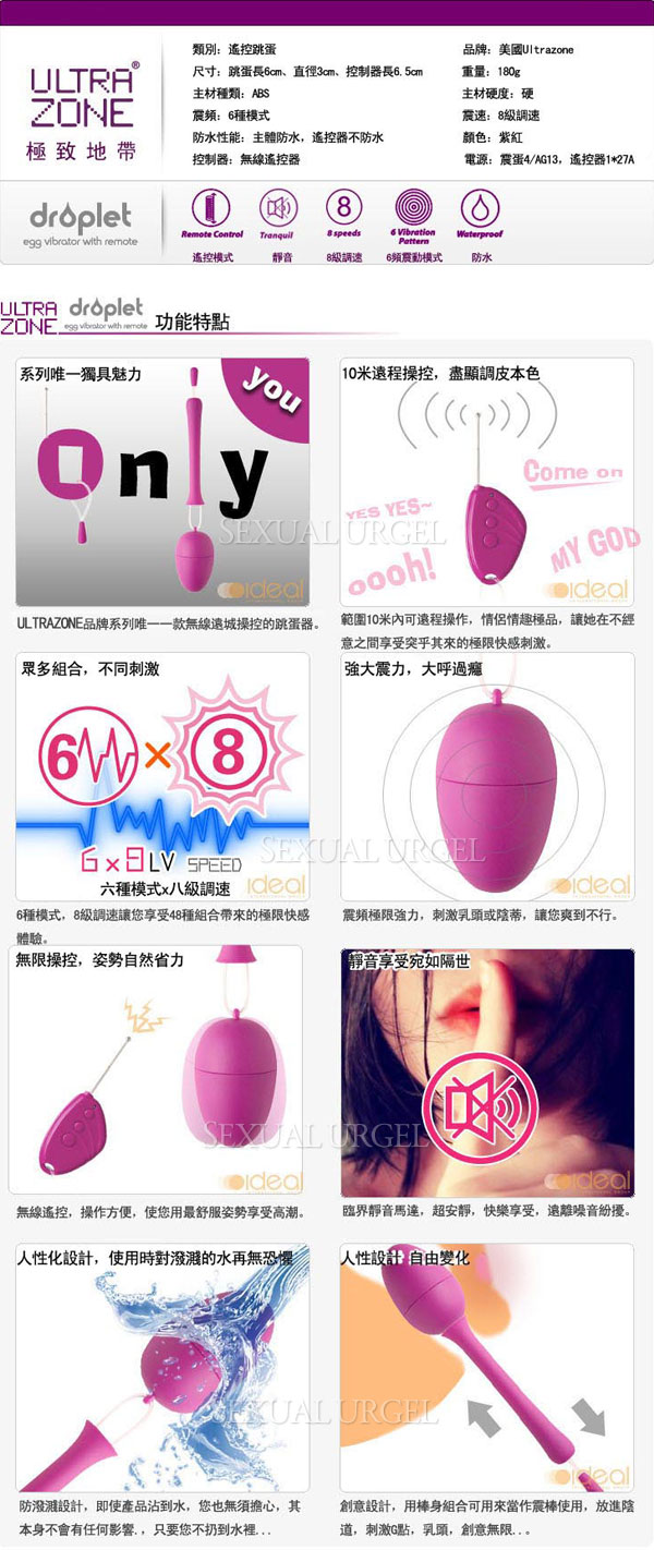 美國Ultrazone-Droplet dew drop 夢幻滴露 創意變形 遙控跳蛋 紫紅