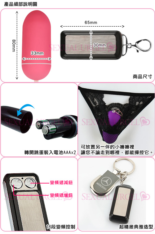 .時尚新潮的汽車遙控器造型加上雙按鍵遙控設計,是目前市場上絕無僅有的高檔無線遙控跳蛋