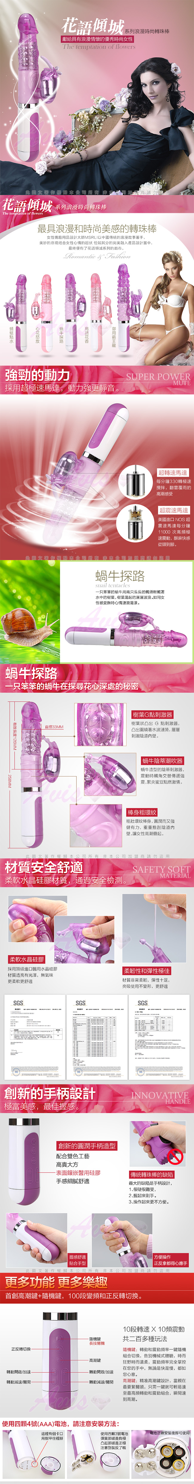 花語傾城-系列10x10段變頻防水轉珠按摩棒 五款 蜻蜓點水,心花怒放,蝸牛探路,鳥語花香,御用霸王花