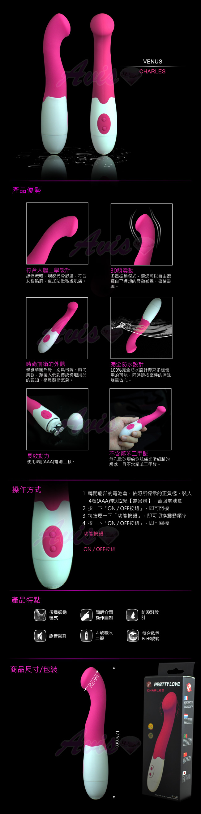 查理斯30段變頻震動G點按摩棒-專為女性量身訂製頭部獨創彎曲形狀設計