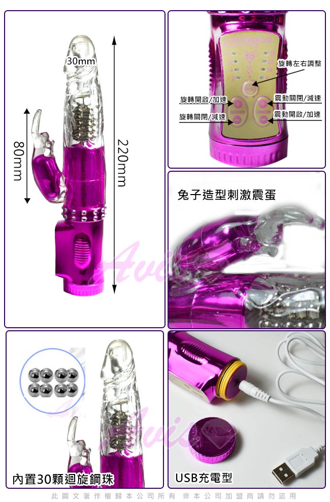 .主商品:拯救潮吹兔 電鍍款8x36段防水轉珠按摩棒(USB充電型)X1