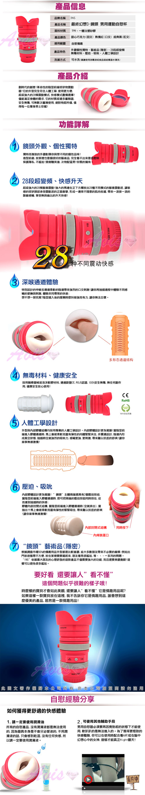 .主商品:愛的卡麥拉 28段變頻 鏡頭造型 電動自慰杯 口交杯(熱情紅)*1