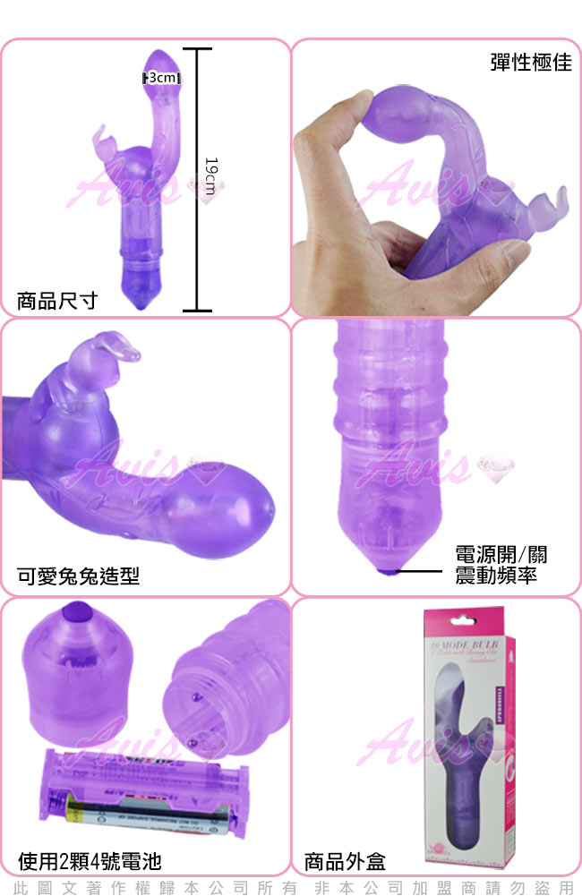 .商品名稱:APHRODISIA 雙震潮吹兔 10段變頻 調情震動按摩棒-紫*1