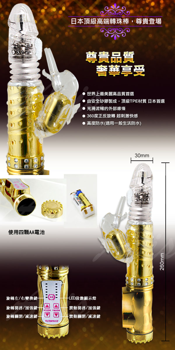 .商品名稱:典藏版 金鑽海獺 288段變頻式伸縮正反轉滾珠按摩棒(皇家臻金) *1