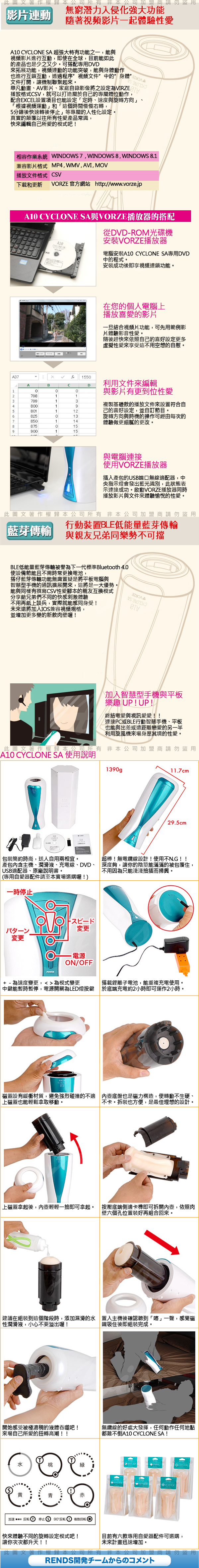 .商品內容:日本RENDS VORZE A10 CYCLONE SA 世界首款 性家電 電動自慰旋風機X1