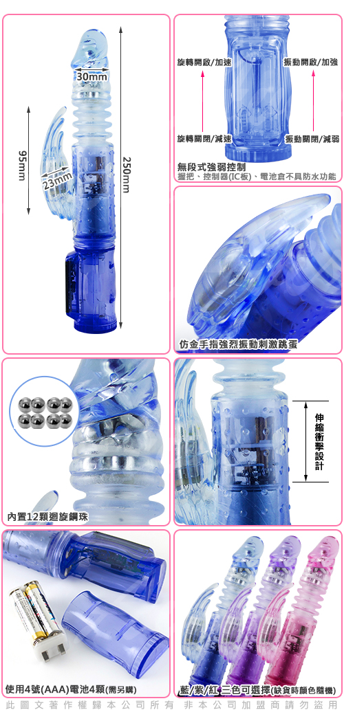 IC微調式伸縮滾珠轉動按摩棒,強弱快慢任您掌控,具旋轉及震動功能
