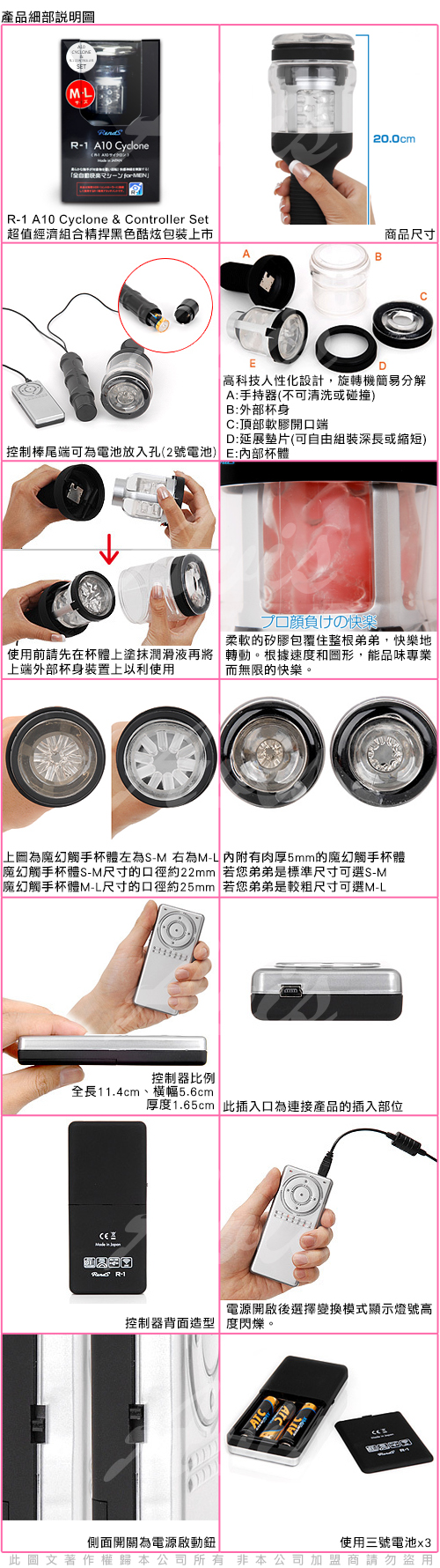 .商品內容:R-1+A10猛男超值優惠組S-M款(R1控制器+A10-CYCLONE超高速迴轉電動旋風強轉機) X1