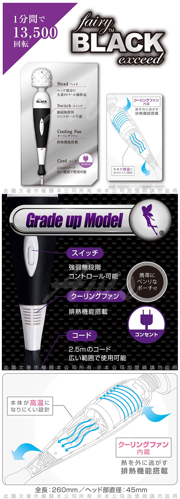 .商品內容:日本FAIRY EXCEED 第七代 渦輪型排熱機能AV女優按摩棒(大凸點13500轉) 黑 刺激強力型 X1