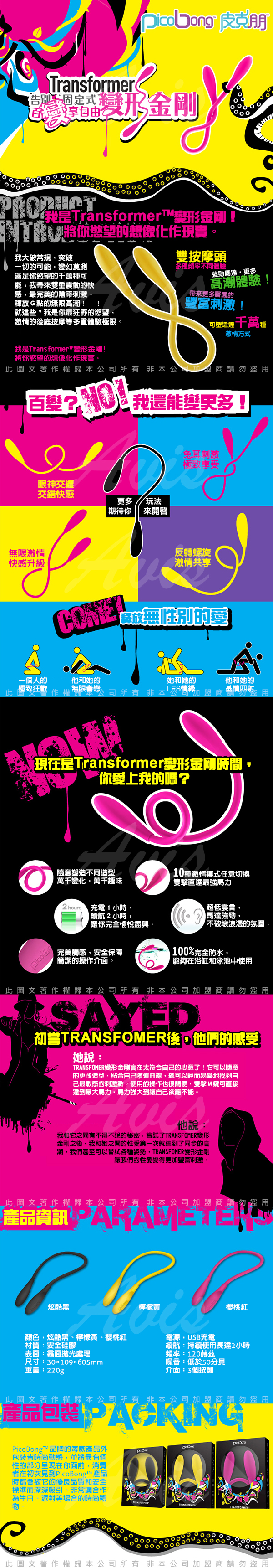 .主商品:瑞典PicoBong Tansformer 變形金剛 G點+後庭+乳夾+女同 多功能雙重震動按摩器*1
