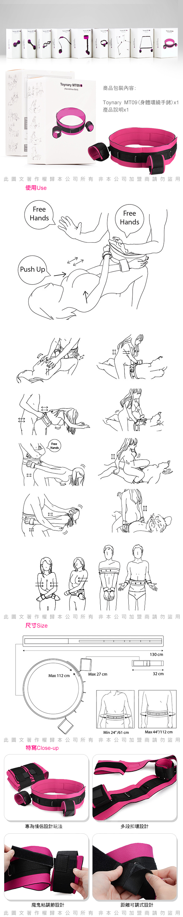 把乳房向上推!令你空出雙手,MT09可以空出你的雙手進行各種常見刺激的做愛姿勢,讓你去擠,打,榨或用你空置出來的雙手挑逗你的伴侶,帶來更多的樂趣和興奮。而且,它捆綁你的伴侶時,能令女伴的乳房推高飄然,實現了你一直想追求的視覺效果。
