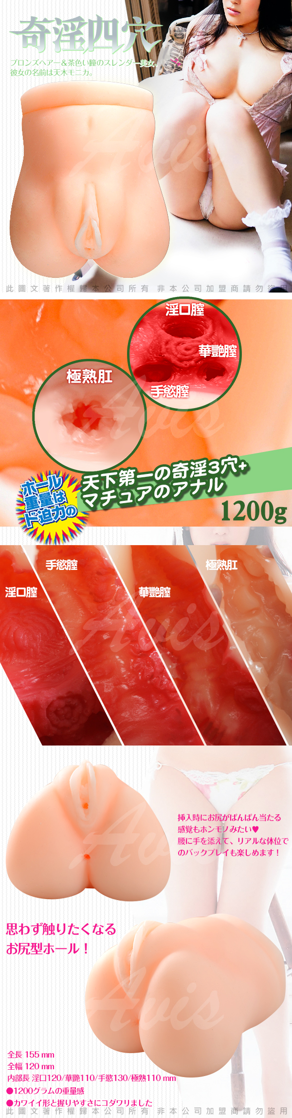 小茉莉四穴名器有非常扎實肉厚的份量,在抽插的時可享受碰撞的快感。