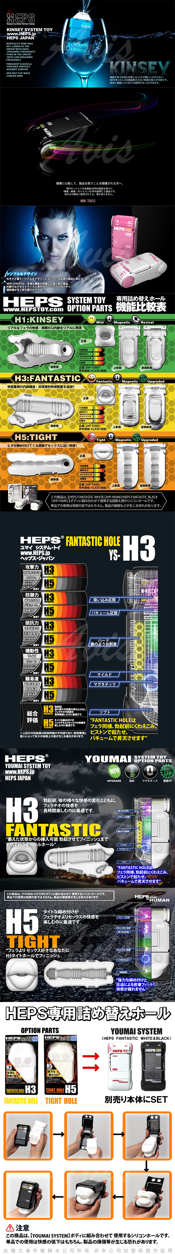 H3 FANTASTIC:H3像真正的嘴,在勃起前緊緊的把你含住,由矽膠套和塑料機身所組成的完美活塞擁有跟人口腔般的緊實感,吸到你高潮
