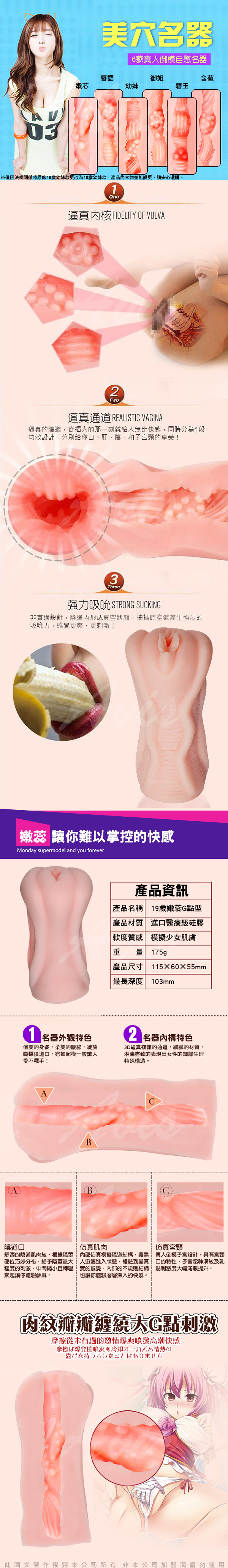 .主商品:美穴名器 仿真吸夾 自慰器 19歲嫩蕊  *1