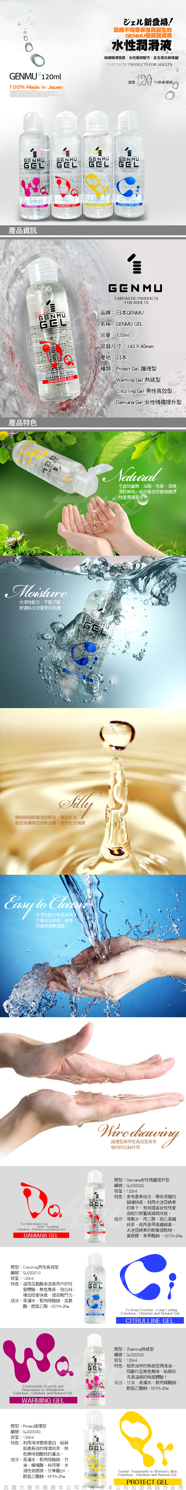 .主商品: 日本GENMU GEL 水性潤滑液 120ml 03 WARMING熱感凝膠 紫色