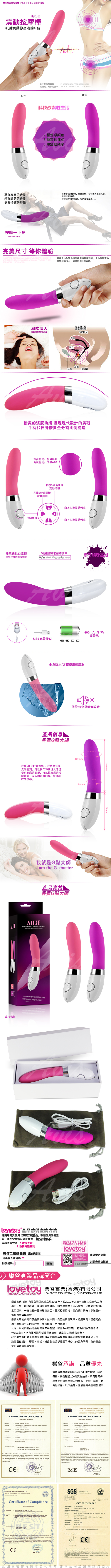 .商品名稱:Lovetoy Alice 愛麗絲 5X5 香蕉G點大濕 G點按摩棒 USB充電