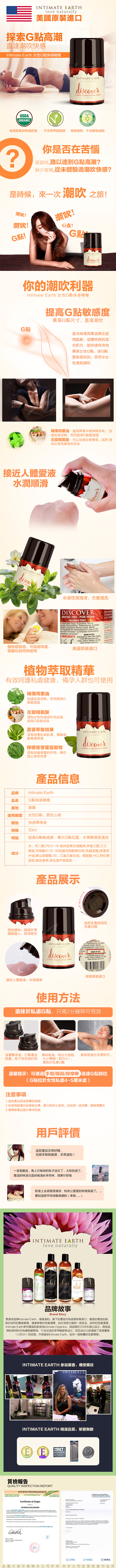 美國Intimate-Earth Discover G-spot gel 女性G點快感凝露 30ml