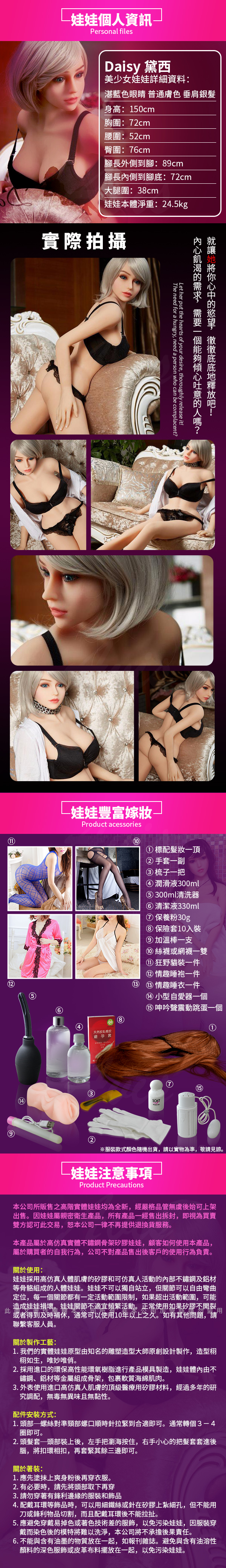 .商品內容:Daisy 黛西 不銹鋼變形 真人實體娃娃 乳交 肛交 陰交 真人倒模 情趣骨骼娃娃 150cm / 24.5kg 非充氣娃娃
