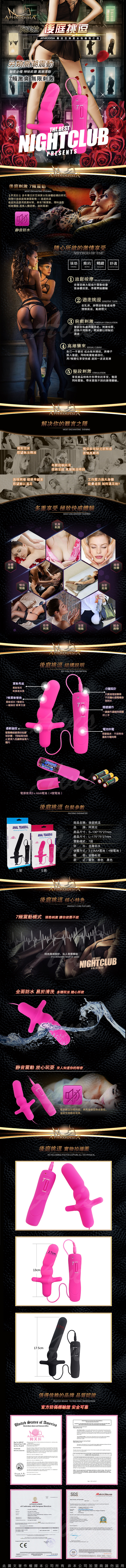 .主商品:APHRODISIA 後庭挑逗 7段變頻 後庭前列腺刺激器 桃紅 S