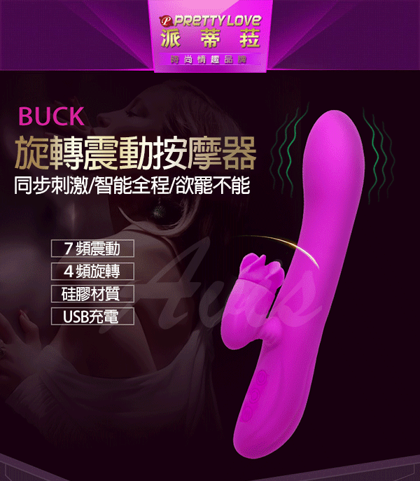 Buck充電式4頻旋轉7頻震動按摩棒以最新科技素材,將按摩棒的表面變得柔細