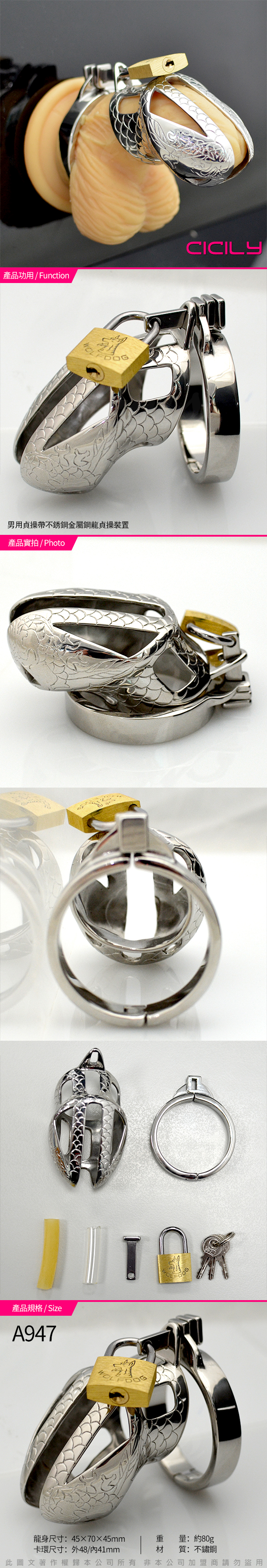 .商品內容:虐戀精品CICILY 蛇蠍夫人 男用貞操帶 蛇形貞操裝置 另類玩具