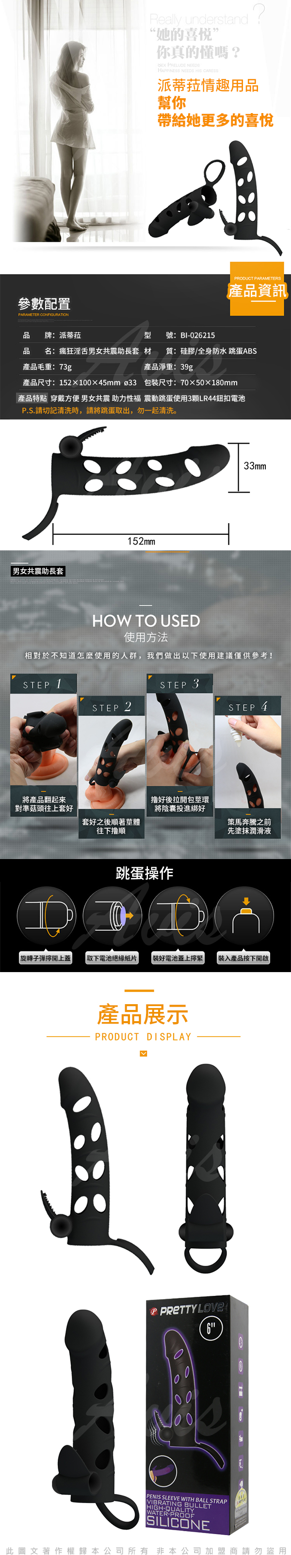 .商品名稱:PRETTY LOVE 激情震動快感加長套 瘋狂淫舌