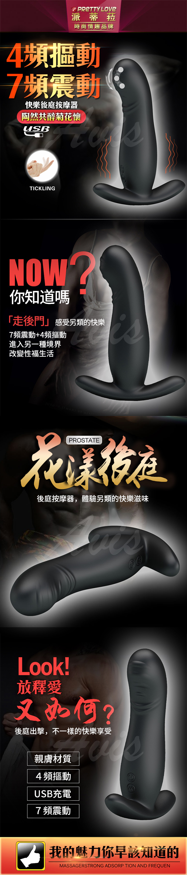 .商品名稱:PRETTY LOVE-放肆快樂USB充電後庭棒-4頻蠕動+7頻震動