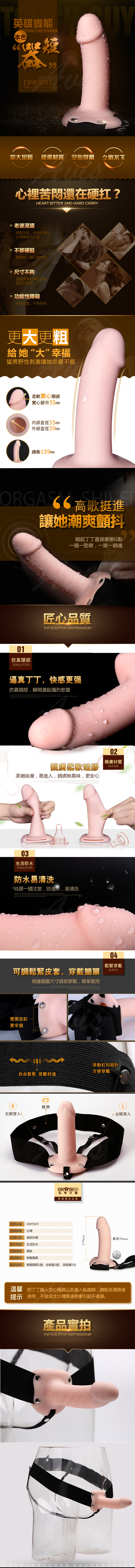 .商品內容:omysky 男兒本色 加大加粗柔軟矽膠空心穿戴老二棒