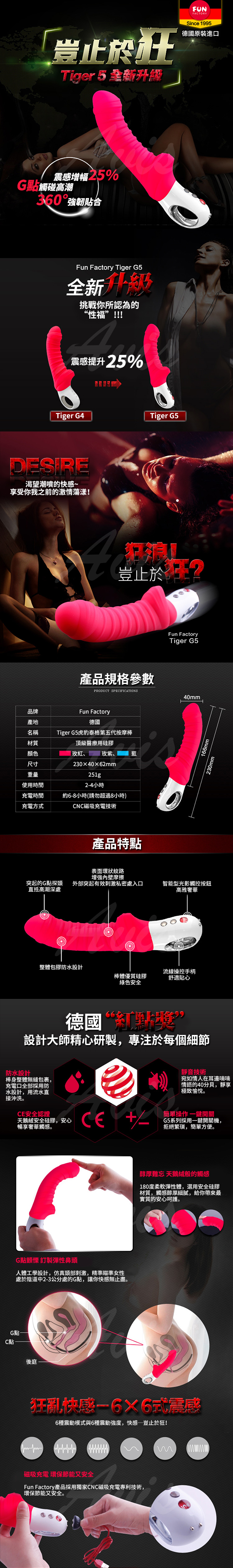 .主商品:德國FUN FACTORY TIGER G5 虎豹泰格 五代 G點時尚奢華震動按摩棒 紫