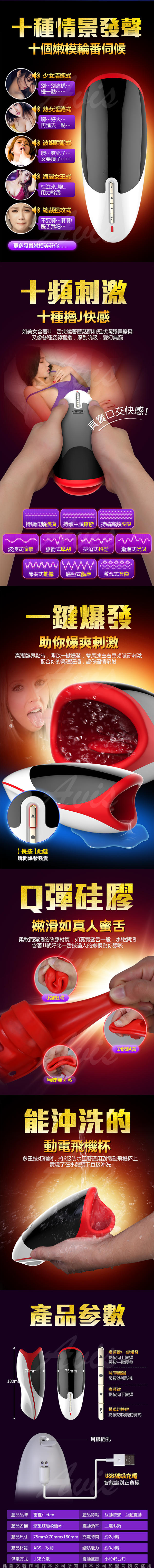 .商品名稱:Leten 慾望紅脣 10段變頻 智能加溫+互動呻吟 深喉口爆飛機杯
