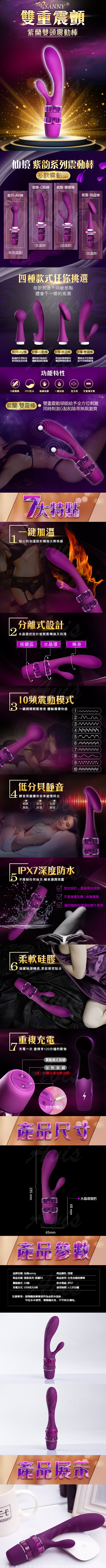 .主商品:Sanny仙境-R2紫蘭 一鍵加溫 10段變頻 雙重震動按摩棒 可多頭替換
