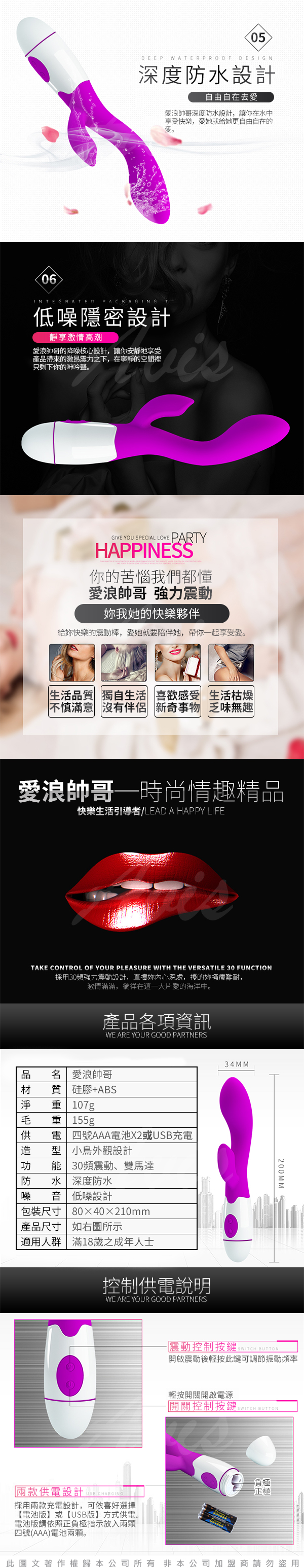 .商品內容:愛浪帥哥 高端時尚30頻電動按摩棒