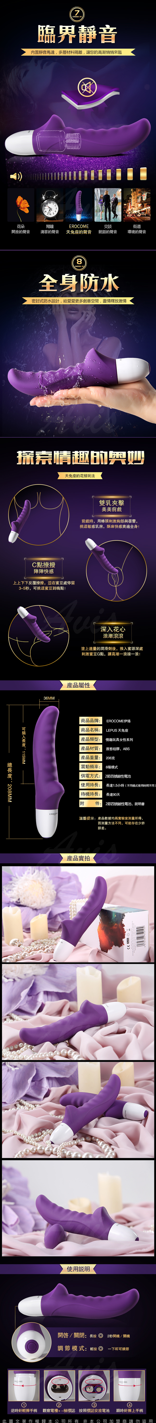 .商品名稱:EROCOME伊珞 LEPUS 天兔座 柔軟防水靜音女用自慰器 震動按摩棒 紫色