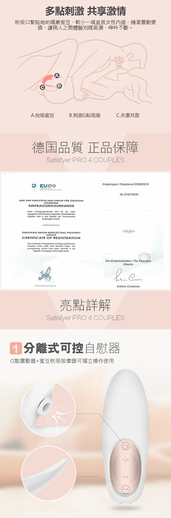 .商品內容:德國Satisfyer PRO 4 COUPLES 烈火情人 夫妻共震吮吸器