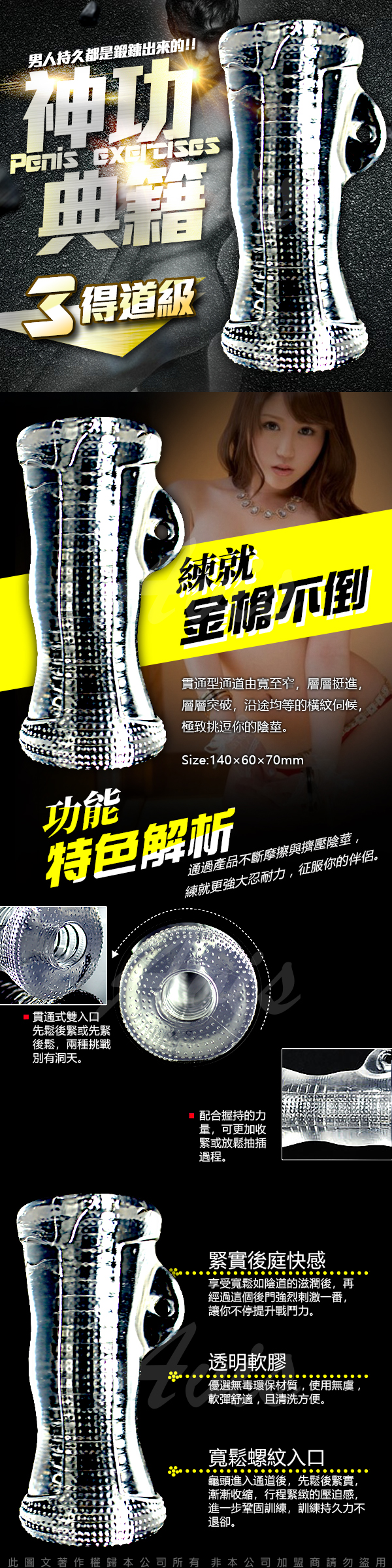 .主商品:神功秘籍龜頭陰莖鍛煉器 男優延時訓練器大師 名器 訓練器 3得道級