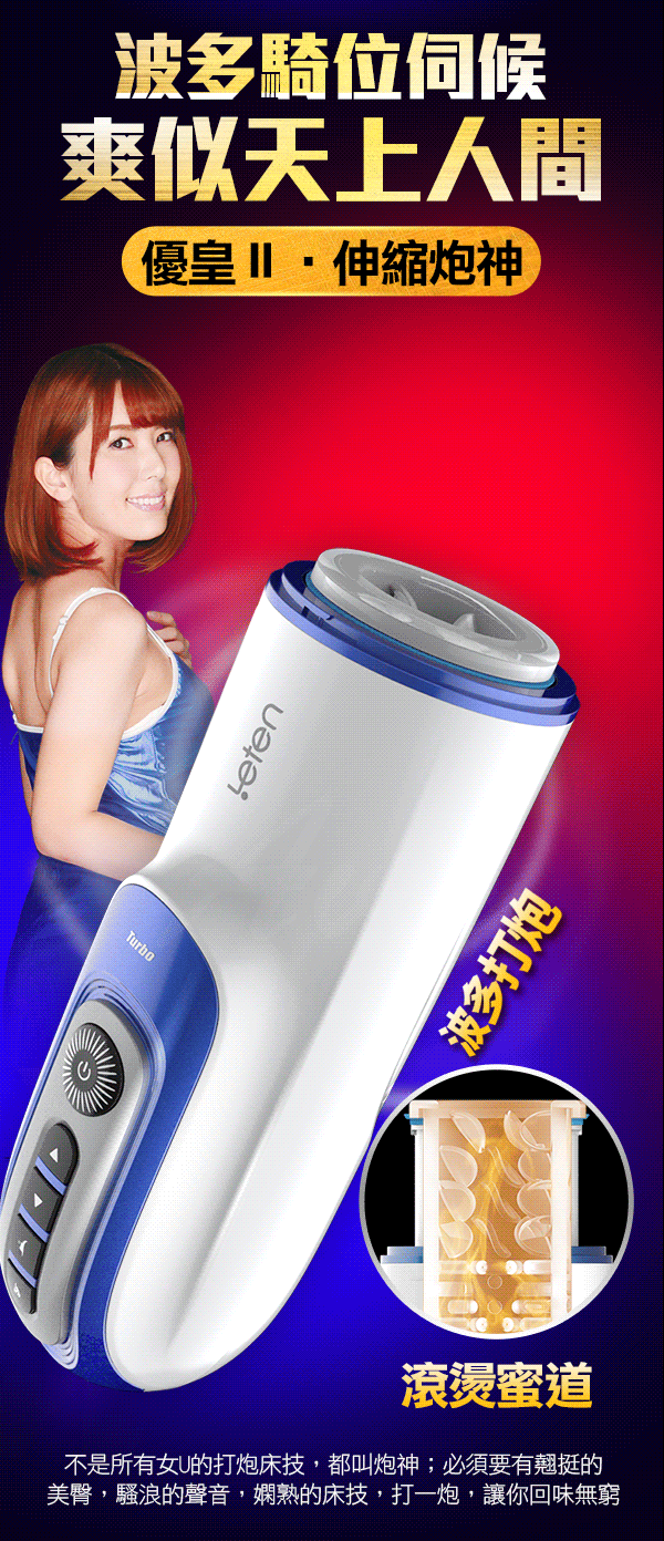 .主商品:LETEN 優皇Ⅱ 2代 伸縮炮神 波多野結衣代言 加溫+智能互動發音+伸縮抽插 全自動飛機杯