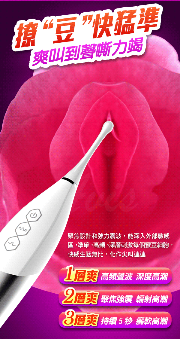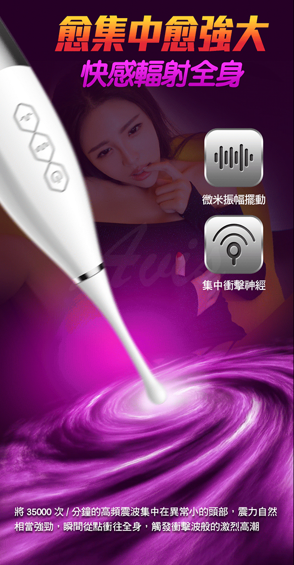 聚焦設計和強力震波,能給女性深層次的精密刺激,直擊女性蜜豆深處的神經
