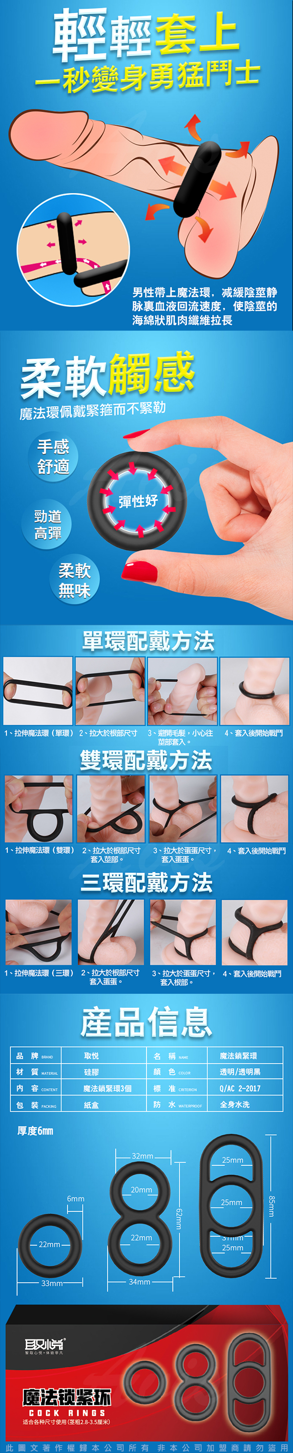 .主商品:取悅 魔法彈力矽膠鎖精環-3種緊箍環