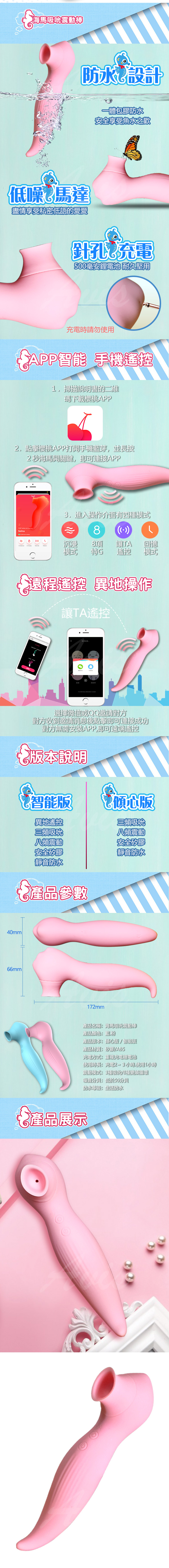 .商品名稱:海馬 智能APP 異地遙控 3X8段吸吮變頻防水靜音吸吮乳陰按摩棒