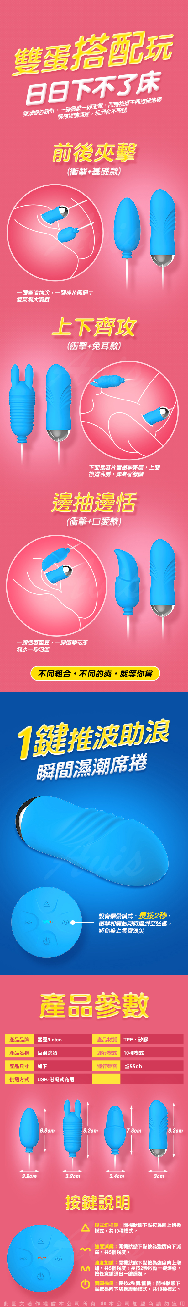 .商品名稱:香港LETEN 巨浪沖擊蛋 全自動衝擊 自動抽插 情趣震動雙跳蛋