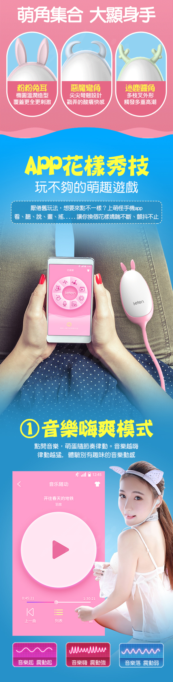 .商品名稱:香港LETEN 萌寵派對 小角獸 16段變頻 APP遙控 性愛無線跳蛋 智能版