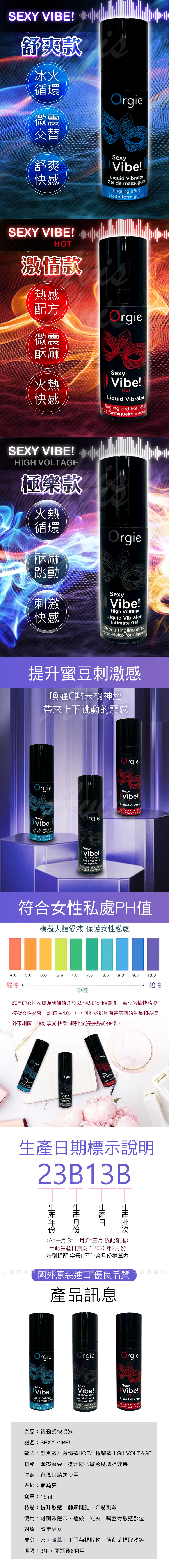 .商品名稱:葡萄牙ORGIE Vibrator Sexy Vibe 跳跳糖 跳動式高潮提升凝露 舒爽款 15ml